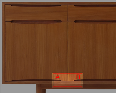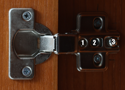 ・Bの扉をフレームに近づけたい場合は、上部金具の「1番のビス」を時計回りに、下部金具の「1番のビス」を反時計回りに、それぞれ少しずつ回してください。