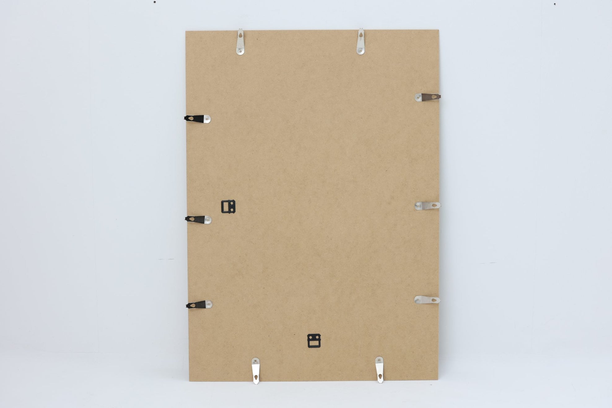 3.裏パネルにポスターをセットして透明パネルを重ねてフレームにセットします。