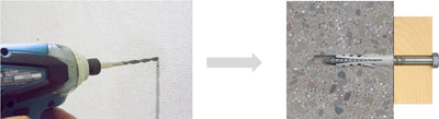 石膏ボードアンカーを挿入後、木ネジを取り付けてください