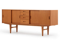 商品説明 | 北欧モダンスタイルの大型のサイドボードです。中央の引出4段は下にいくほど深めで収納力と便利さを兼ね備えた設計です。両サイドの扉内の収納部も大きく設計されており、また棚板を外すことで大きな本なども収納できます。通常大型のテレビボードなどを設置すると部屋に圧迫感がでてしまいますがこちらの品は脚を長めにすることでお部屋に圧迫感を与えにくいデザインになっています。 |